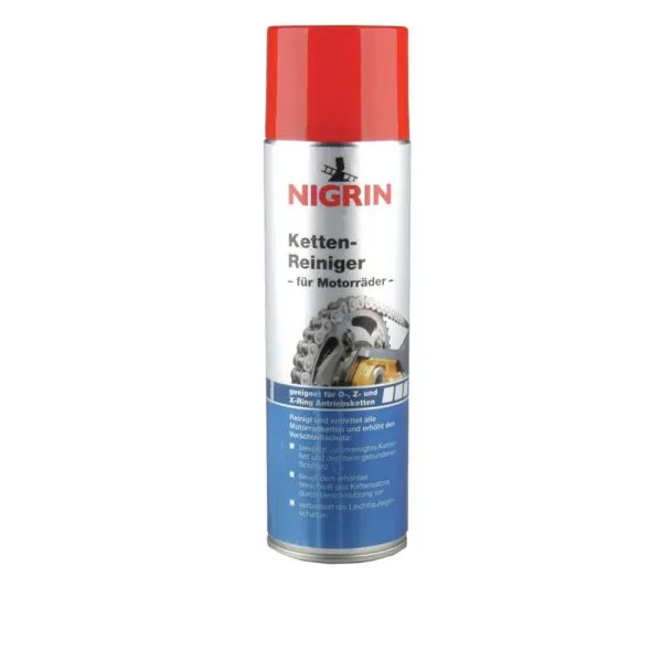 Der NIGRIN Kettenreiniger 500ml ist gebrauchsfertig und entfernt zuverlässig Schmutz von Motorrad- und Fahrradketten.