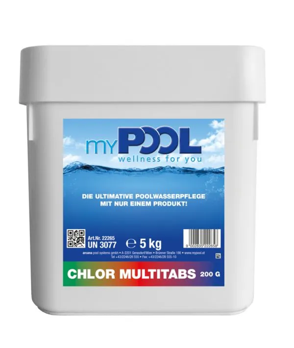Chlor Tabs Multi 200gr., werden in den Skimmer oder in einen Dosierschwimmer gegeben, Tabletten nicht ins Becken werfen, vor Gebrauch stets Etikett und Produktinformationen lesen