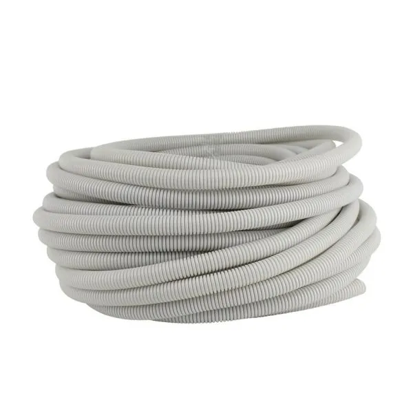 Gewelltes Iso-Flexrohr in der Farbe grau, welches von der Form her flexibel und gewellt ist und eine Druckfestigkeit von 320 N besitzt.