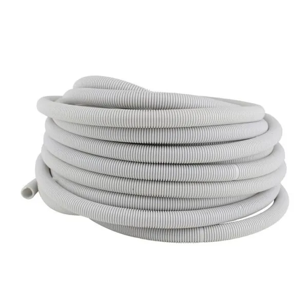 Gewelltes Iso-Flexrohr in der Farbe grau, welches von der Form her flexibel und gewellt ist und eine Druckfestigkeit von 320 N besitzt.