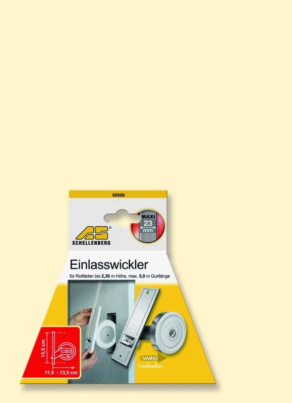 für den Wechsel eines defekten Gurtwicklers, für Rollläden an Fenstern und Türen bis 2,30 m Höhe, für Rollladengurte bis 5,6 m Länge und 23 mm Breite, Federdose bereits vorgespannt, Lochabstand: 135 mm, kompatibel mit Abdeckplatten 13,5 cm, Montageart: Unterputz