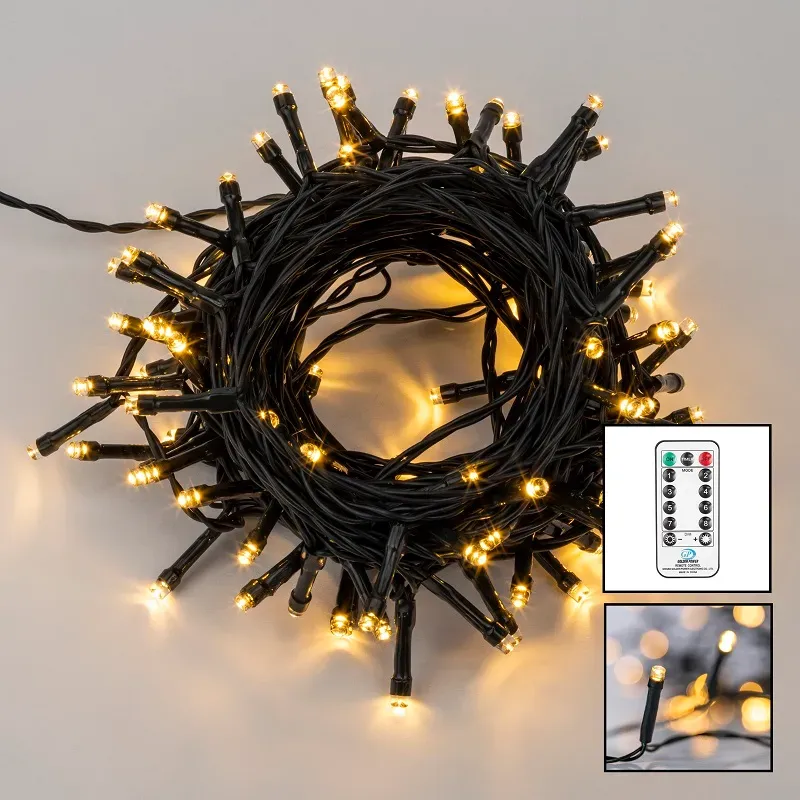 LED Lichterkette 9,9 m mit Fernbedienung mit 100 warm weiße LEDs