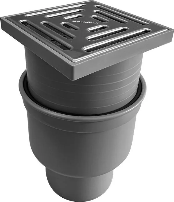 Kellerablauf 15x15 cm DN 100 senkrecht, Edelstahlrost