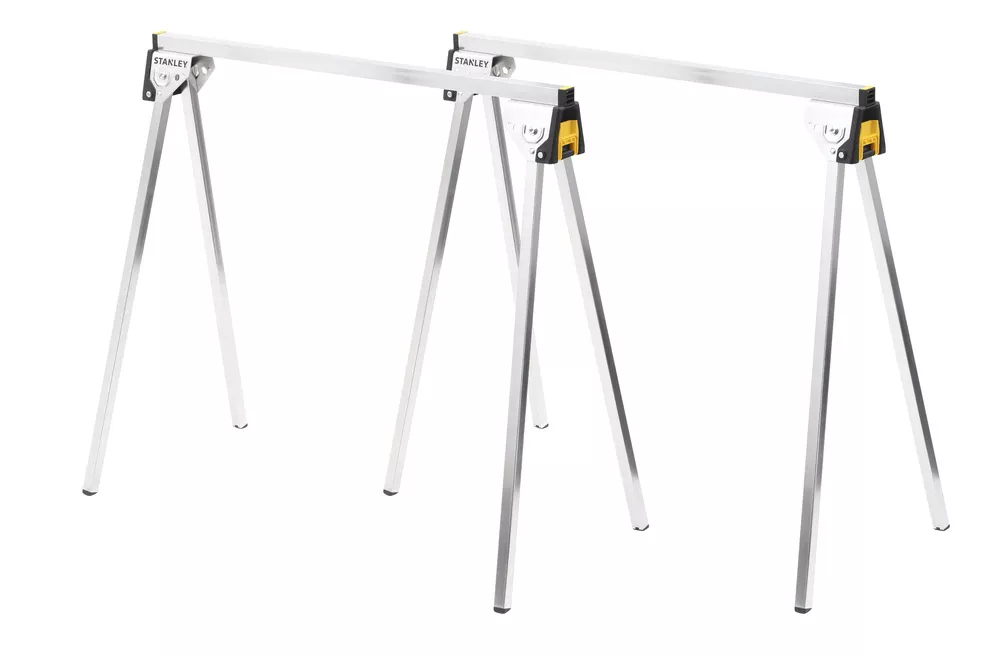 Das klappbare Unterstellbock-Set von STANLEY besteht aus zwei stabilen Metallbeinen und eignet sich ideal zum Abstützen von Werkstücken. Dank der klappbaren Bauweise sind die Böcke leicht zu transportieren und platzsparend zu verstauen.