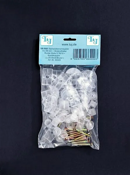 Spanplattenschrauben 6x50 mm + Abstandhalter S76/18 + Kombikappen 20 Stck/Beutel