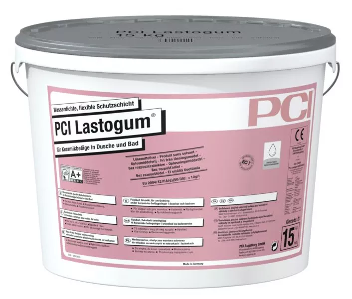 Die PCI Lastogum Abdichtung 15 kg grau bietet zuverlässigen Schutz vor Feuchtigkeit und ist für den Einsatz unter Keramikbelägen in Nassbereichen wie Badezimmern und Duschen gedacht.