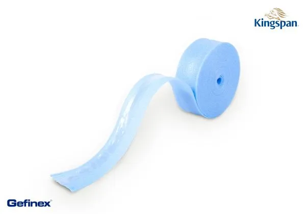 Eine integrierte Folienlasche ermöglicht die einfache und sichere Verklebung des Dämmstreifens direkt an der Feuchtigkeitssperre.