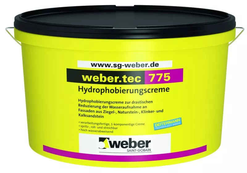 Die weber.tec 775 Hydrophobierungscreme fungiert als eine Art Fassadenimprägnierung und reduziert entsprechend die Wasseraufnahme an Fassaden aus Ziegel-, Naturstein-, Klinker- und Kalksandstein drastisch.