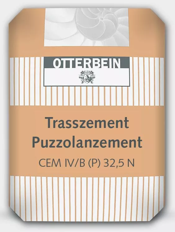 Otterbein Trasszement der Festigkeitsklasse 32,5 nach EN 197-1 enthält Portlandzement und Naturtrassmehl. Dieser Puzzolanzement ist ideal für die Herstellung von geschmeidigem, widerstandsfähigem Beton bis zur Festigkeitsklasse C25/30 sowie für Putze und Mörtel im Innen- und Außenbereich. Besonders bei der Verlegung von Natursteinplatten wird er bevorzugt eingesetzt, da er die Gefahr von Fleckenbildung (Kalkausblühungen) reduzieren kann.