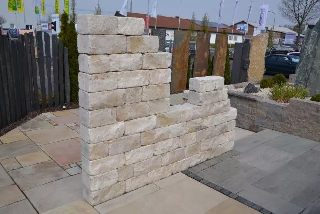 Jura Kalkstein Schichtmauer getrommelt Höhe 16,3cm, Längen 20, 30 und 40cm Tiefe ca. 20cm
