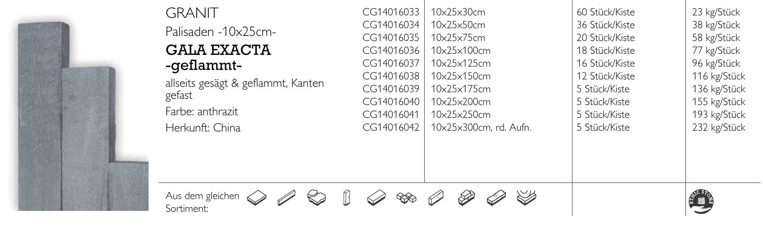 - Granit-Palisade Gala Exacta geflammt
