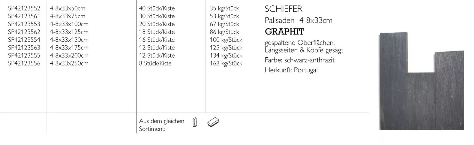 Stelen Schiefer Graphit 4-8x33x200cm, gespalten, 4 Seiten gesägt Schiefer Portugal schwarz-anthrazit