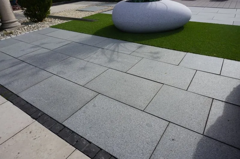Granit Bodenplatte 40x40x3cm anthrazit geflammt+gebürstet gesägt