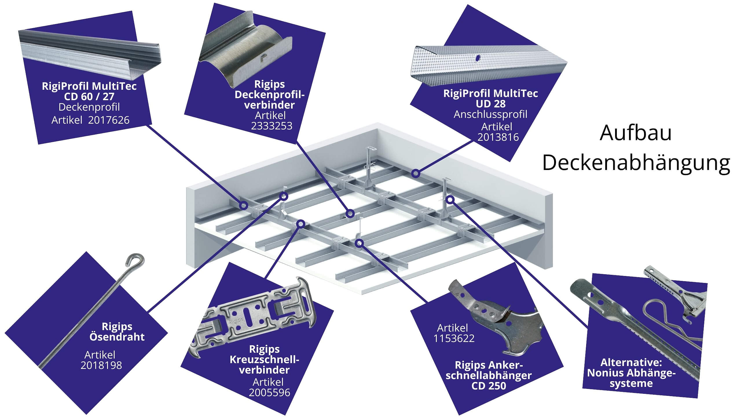 - Wird in Kombination mit C-Deckenprofilen (CD-Profilen) verwendet
