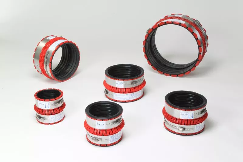 Die Funke VPC-Rohrkupplung verbindet sicher Rohre gleicher Nennweite aus verschiedenen Werkstoffen, auch bei stark unterschiedlichen Außendurchmessern. Sie besteht aus einer reduzierbaren Dichtmanschette aus Elastomergummi, einem zentrisch reduzierbaren Fixierkorb aus Kunststoff und Edelstahlbindern zur präzisen Durchmesseranpassung. Das Doppeldichtprofil gewährleistet eine zuverlässige Abdichtung gemäß DIN EN 1610, während der Mittelteil eine einfache Montage ermöglicht. Materialaussparungen im Gummi erlauben ein verzahntes Eingreifen des Fixierkorbs für eine sichere Verbindung.